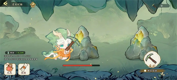 随机采矿获得天地品灵石或灵石宝箱,可用于升级专武,建议用元宝购买次数。
