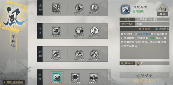 强势速攻(适用于战力显著占优时):如果我们的整体战斗力已经粉碎了我们的对手,就没有必要复杂的卡片位置。你可以直接使用风法技能[金鼓齐鸣],快速清理终巢守军,以最直接的方式结束战斗,锁定胜利。