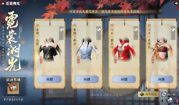 10月9日至10月26日,点击【五年秋水记今日】庆典页面【霓虹灯追踪】投票两次,当天即可获得时尚自选礼盒*1,无需等待,50+畅销外观随意选择!如果你不想选择时尚,你也可以选择2000月的灵石~问影晶石、随意染盒等好礼物等着你去拿!