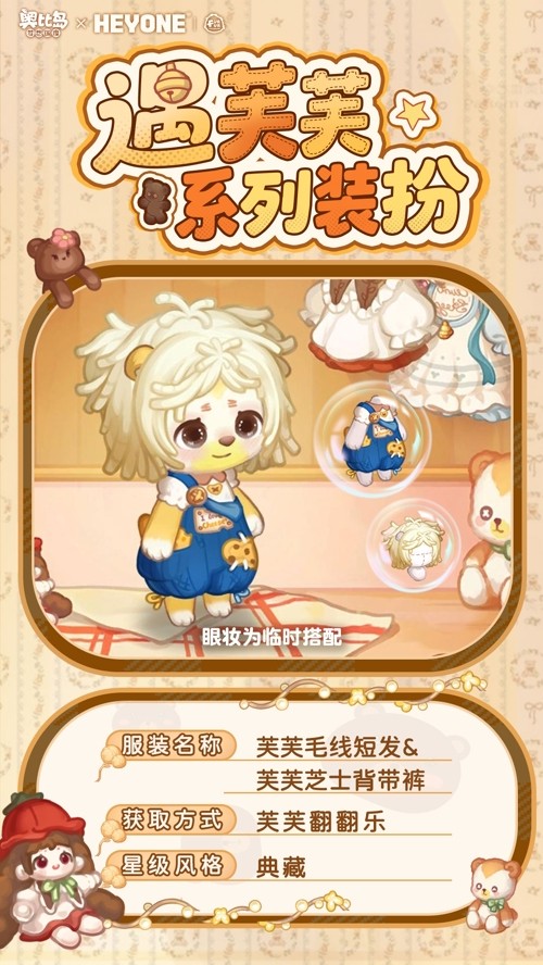 10月17日5:00-10月30日23:59期间,参与「芙芙翻翻乐」限时活动可获得活动限定奖励,包括「芙芙羊毛辫子」「芙芙数羊睡裙」「芙芙萌动水灵眼」等限定装扮,还有「顽皮恶作剧睡床」「调皮恶作剧小窗」「晚安小熊芙芙」家具散件等限制,头像框「芙芙数绵羊」,背景卡「衣柜的秘密」,双人动作「情谊一线牵」晨星质量称号「软芙芙」等待超级惊喜礼物!另外,在这次活动中累计打开30张卡片的小奥比,就可以得到限量装扮「芙芙熊偶礼服」!活动期间,累充38元可获得有限的陆地坐骑「芙芙的摇小狗」、限定累充达到68元可获得限定装扮「空间待机(芙芙)」。