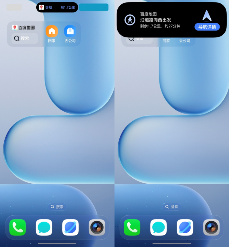 在步行、骑自行车等多任务平行场景中,用户需要继续关注导航信息,但可能会频繁切换手机应用程序。荣耀Magicos的智能胶囊功能提供了优雅的解决方案。百度地图将步行的核心导航信息实时显示在屏幕顶部的智能胶囊中,如行驶方向和剩余距离。即使用户将应用程序放置在后台或浏览其他内容,关键信息仍然很明显。这解决了用户过去必须在应用程序之间反复切换或忍受导航中断的问题,并实现了多任务平行下的连续信息体验。