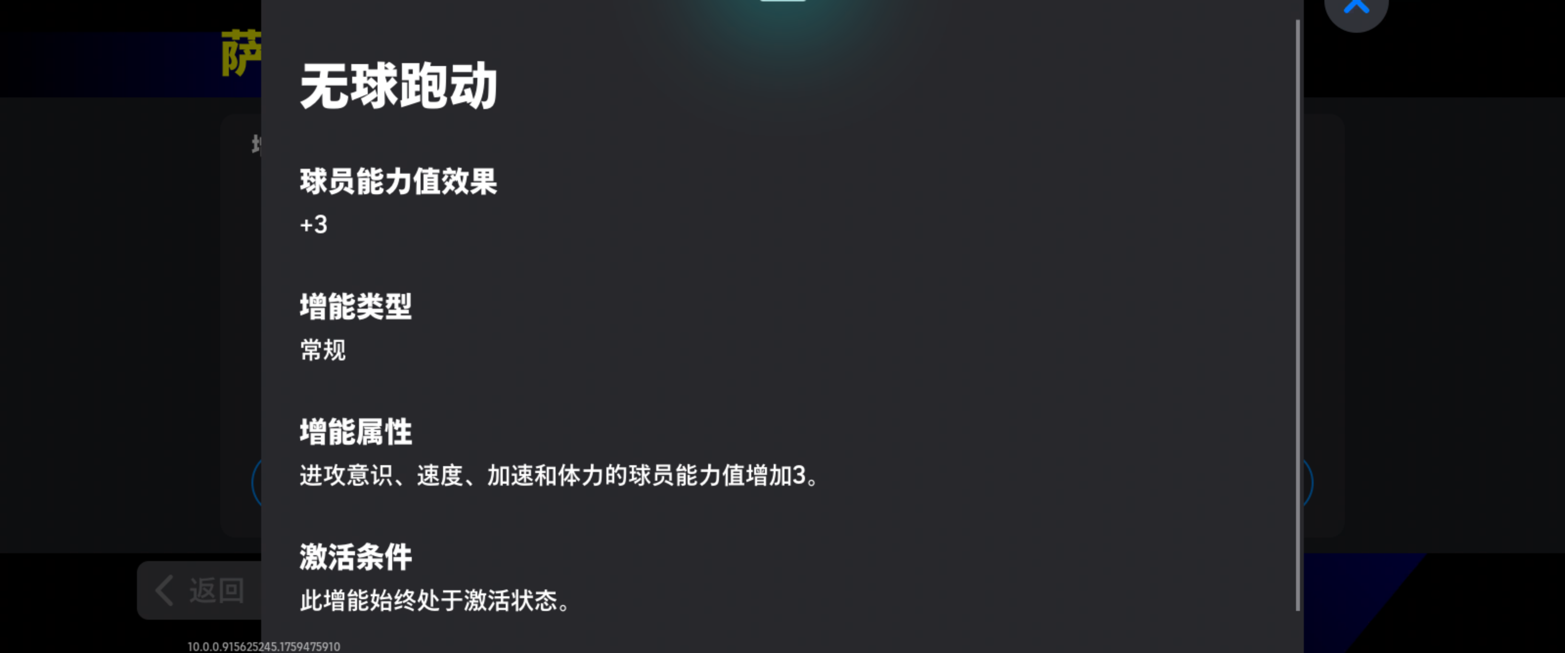 埃托奥的增能属性[无球跑动 +3】